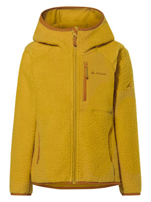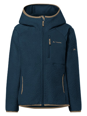 Ein Teddy zum Anziehen - die wunderbar weiche Kids Torridon Hoody Jacket II wurde aus einem kuschelig dicken Sherpafleece hergestellt und ist für Kinder der Lieblings-Dauerbegleiter durch die kalten Herbsttage. Diese Kapuzen-Fleecejacke schließt die Körperwärme sehr gut ein und hält Kopf und Körper schön warm. Zwei Reißverschluss-Eingrifftaschen halten Taschentuch und andere Kleinigkeiten sicher verwahrt. Das weiche, pflegeleichte und schnelltrocknende Fleece besteht überwiegend aus recyceltem Material, schont damit die Umwelt und spart wertvolle Ressourcen. Die funktionelle VAUDE Kinderbekleidung zeichnet sich durch hochwertige Materialien, kindgerechte Passformen und Farben sowie eine umweltfreundliche Herstellung aus. Wir entwickeln durchdachte Kinder-Outdoorbekleidung, die sich durch ihre Langlebigkeit auch von Kind zu Kind weitervererben lässt. Das VAUDE Green Shape-Label steht für ein umweltfreundliches, funktionelles Produkt aus nachhaltigen Materialien. Als Mitglied mit Leader Status bei der unabhängigen Organisation Fair Wear engagiert sich VAUDE für faire Arbeitsbedingungen und faire Löhne.