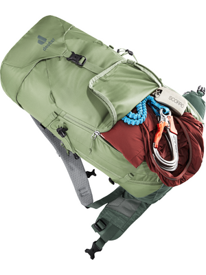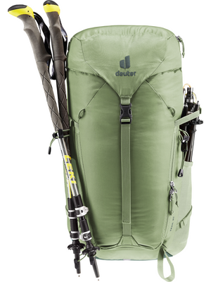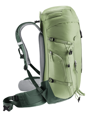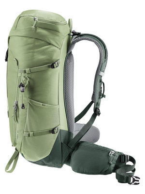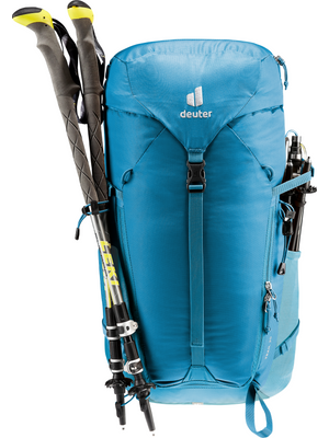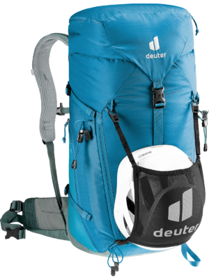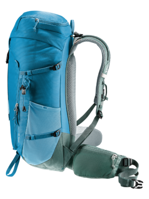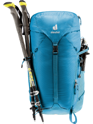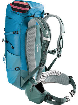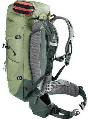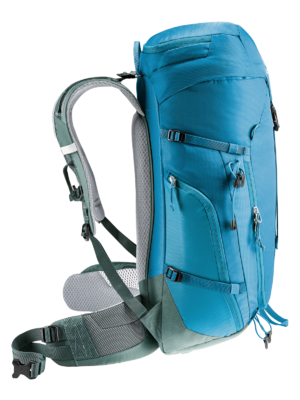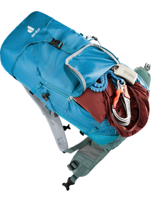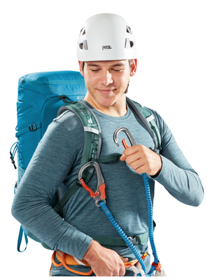 Das Airstripes Rückensystem mit geringer Rückenauflage und großen Belüftungskanälen sowie die perforierten Schulterträger und Hüftflossen mit Taschen sorgen für optimale Luftzirkulation, körpernahe Gewichtsverteilung und damit einen kompakten Sitz in jedem Terrain. Die flache Deckelkonstruktion bietet gute Kopffreiheit - auch mit Helm. Dank Fixierungen an den Schulterträgern sind die Karabiner des Klettersteigsets stets griffbereit. Zudem sind Equipment und Material dank großem Reißverschluss-Frontzugang und Seitentaschen schnell zur Hand.