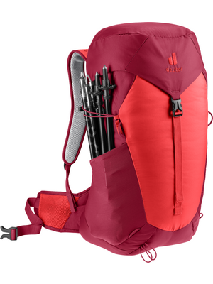 Der bequeme Rucksack für Tagesausflüge mit federleichtem, maximal belüftetem Aircomfort-Rückensystem bietet nicht nur eine sehr gute Gewicht-Komfort-Ratio, sondern besitzt auch ein geräumiges Hauptfach sowie eine Smartphone-Tasche, elastische Seitentaschen, Deckelfächer und Schlaufen außen am Rucksack, die das Verstauen und Befestigung von Gegenständen und Stöcken mühelos einfach machen. Er ist Helmnetz- und Trinksystem-kompatibel (bis 3 L) und hat eine abnehmbare Regenhülle.