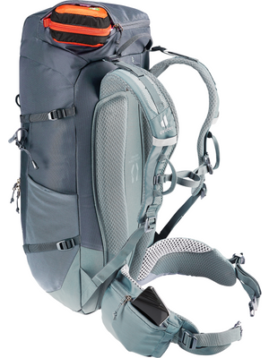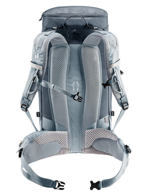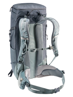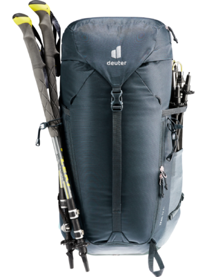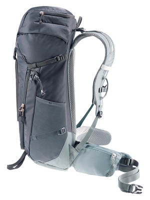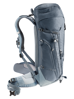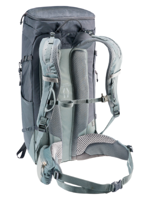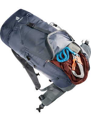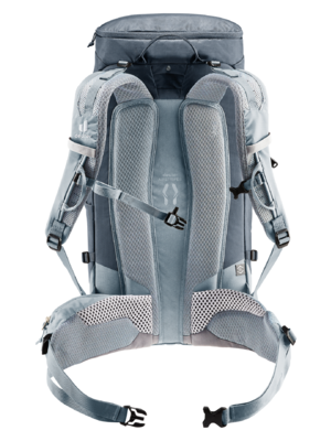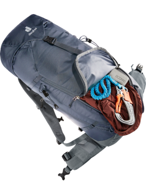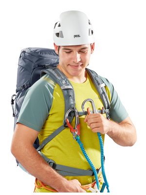 Das Airstripes Rückensystem mit geringer Rückenauflage und großen Belüftungskanälen sowie die perforierten Schulterträger und Hüftflossen mit Taschen sorgen auch bei großen Menschen (ab 185 cm) für optimale Luftzirkulation, körpernahe Gewichtsverteilung und damit einen kompakten Sitz. Die flache Deckelkonstruktion bietet gute Kopffreiheit - auch mit Helm. Dank Fixierungen an den Schulterträgern sind die Karabiner des Klettersteigsets stets griffbereit und das Material dank großem Reißverschluss-Frontzugang und Seitentaschen schnell zur Hand.